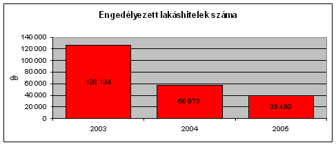 • 2005-ben kilencvenezerrel kevesebb család vehette igénybe az állami támogatott lakáshitelt. 2005-ben csaknem 90 ezerrel kevesebb, csupán 39 ezer család vehetett igénybe államilag támogatott lakáshitelt, míg 2003-ban még 126 ezren élhettek ezzel a lehetőséggel.