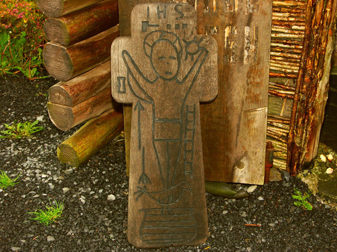 A kis kápolna előtt egy eredeti fakereszt a régmúltból
