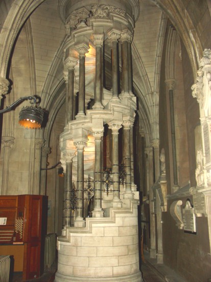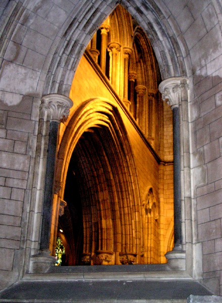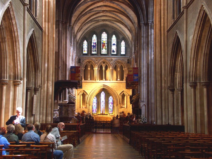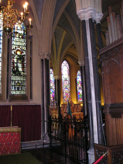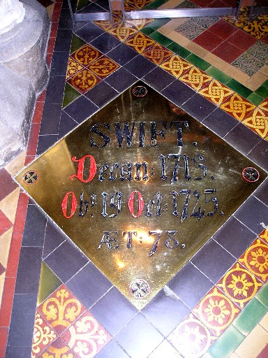 Jonathan Swift 1713-45 között a St Patrick katedrális esperese volt. A padlóba helyezett réztábla jelzi sírhelyét.