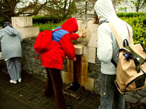A szent kutaknál megmosdanak a zarándokok, isznak a vízből és kis üvegekben haza is visznek belőle