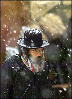 A hó ellenére többen a Sirató Falhoz vonultak. (Netscape galéria)