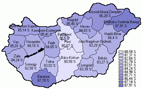 Az IGEN aránya megyénként |