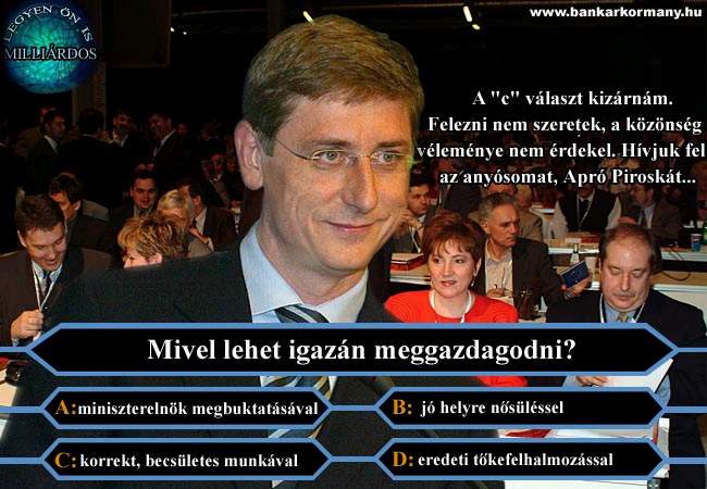 Gyurcsány és a morál - "Tíz év múlva a világot Magyarországon sem a politikusok fogják irányítani. A politikusok azért vannak, hogy az országban élők érdekeit olyan módon hangolják össze, hogy béke legyen. Kinek lesz akkor nagyobb az érdekérvényesítő képessége? Annak aki alkalmazottként százezer forintot keres, vagy aki mögött egymilliárd forint van. Nyilván az utóbbinak. ... Nagyon fontos a pénz! Nem hiszek azoknak, akik morálisan akarják megváltani a világot..."(Gyurcsány Ferenc, 1996, KÁPÉ gazdasági hetilap)