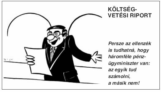 Pörög a gazdaság? Hát annyira nem, mint a vízóra, legyint; s a gázóra állásáról nem is beszél. Örül az eddigi enyhe télnek; amoda is el tudta vállalni a csatorna bekötését. Sőt, Pesten is akadt munkája; ajtó-ablak mázolás, négy napig, az ottani ár feléért. De így is megérte. A lánya két év múlva végez egy főiskolán. A fia jövőre érettségizik. Hogy céget kellene alapítaniuk…? Még tűnődnek rajta.