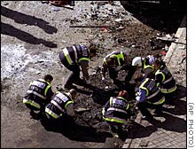 A világnak meg kellene tanulnia, hogy vitáit ne az erőszak révén oldja meg. Minden hitelét elveszti az az ügy, amelyet ártatlanok elpusztításával képviselnek. Képünkön a robbantás helyén keresik a nyomokat a rendőrség szakemberei. A másik képen Jose Maria Aznar miniszterelnök és Luisa Fernanda Rudi házelnök a gyászistentiszteleten.