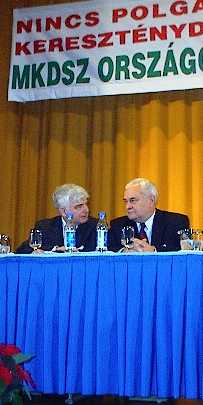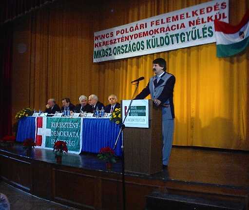 Kövér László, a Fidesz Magyar Polgári Párt elnöke köszönti az MKDSZ Küldöttgyűlését