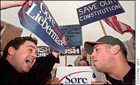 A feliratok: balkézre a két demokrata vezető neve, jobbra: Mentsd meg az Alkotmányt! (Részletesen a CNN honlapján)