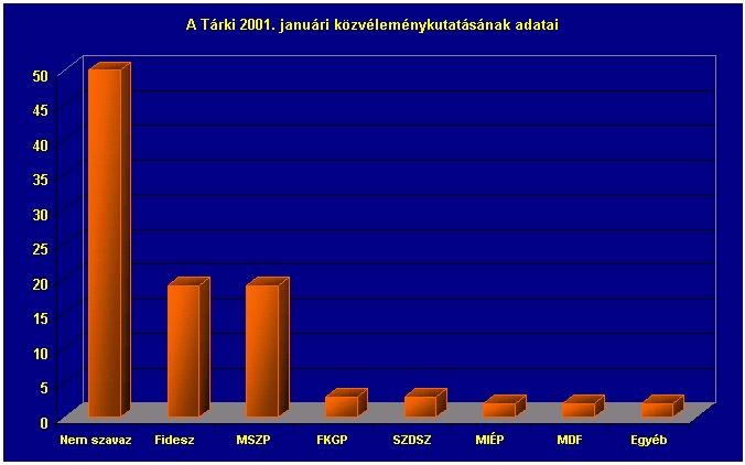 Nézzük a pontos adatokat: Fidesz 19 %, MSZP 19 %, FKGP 3 %, SZDSZ 3 %, MDF 2 %, MIÉP 2%, egyéb 2 %, nem szavaz 50 %.