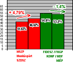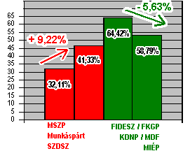 - a jobb oldal még mindig jelentősen nagyobb táborral rendelkezik, mint a bal,