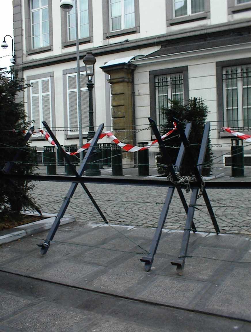 A belga hatóságok nem bízták a véletlenre. A szeptember 11-ét követő események miatt félember magasságú szögesdrót akadály övezi többek között az Amerikai Egyesült Államok nagykövetségét.