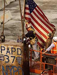 Kereskedelemmel a világegységért A New York-i Világkereskedelmi Központ hűlt helyéről elszállították az utolsó acéloszlopot: amerikai zászlóba csomagolták, és egy hordágyhoz hasonló szerkezetre fektették. Így emlékezve a soha meg nem talált halottakra.