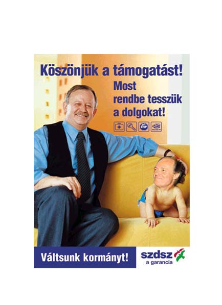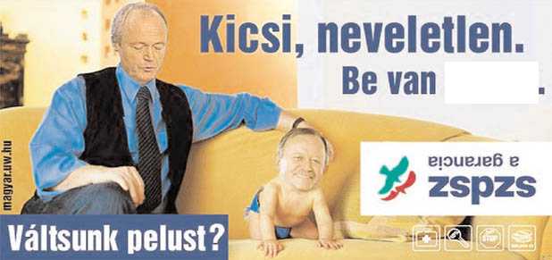 És akkor nézzünk komolyabb politikai tartalmúakat. A pelenkázó Kuncze sokak fatnáziáját megmozgatta. Saját tábora úgy fejlesztette tovább a képet, hogy Orbán Viktor fejét montírozta a baba testére. Ezzel bántott minket, de új elemt nem vitt be. A mi oldalunk is élt a kínálkozó lehetőséggel. Az egyik változat abból indul ki, amit a - megfelelő eligazítást megkapott - Tanítványtól várni lehet.