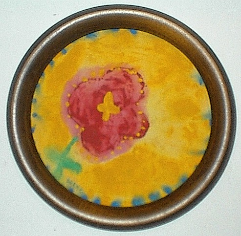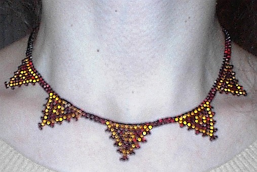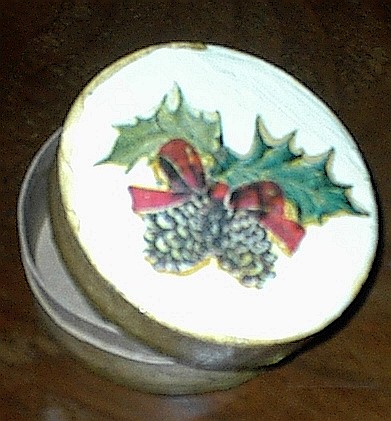 Felül egy falra akasztható dísztál, egy hat éves kislány műve, középen egy nyakék, alul varródoboz.