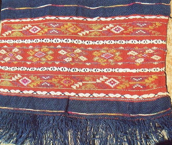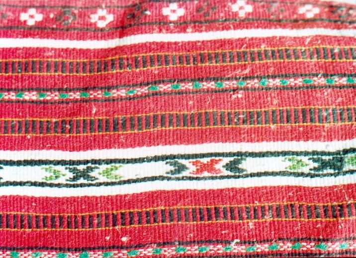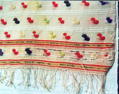 Katrica geometrikus díszítménnyel, a végek rojtosak, Erdély 1800-as évek közepe