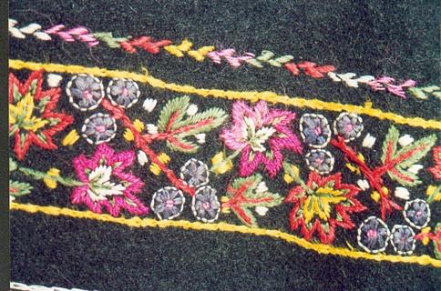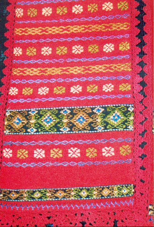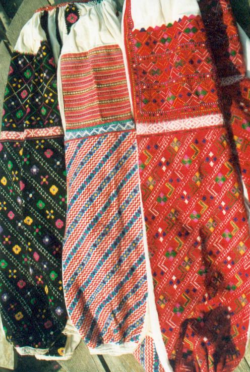 Sajátos csángó színek a fekete, a szegveres, a meggyveres.