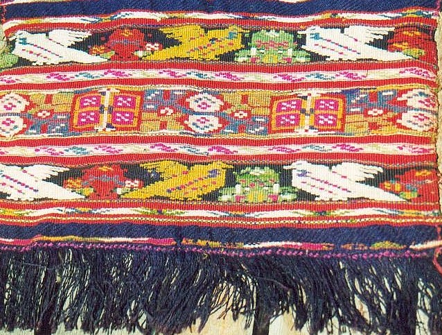 Gyönyörű szőttes katrincák, a végek rojtozottak, kecskeszőrből leveles virág motívumokkal, madár motívumokkal
