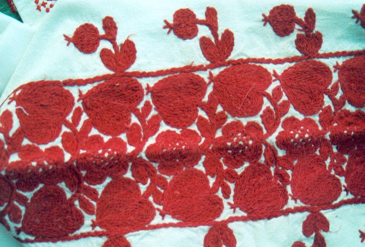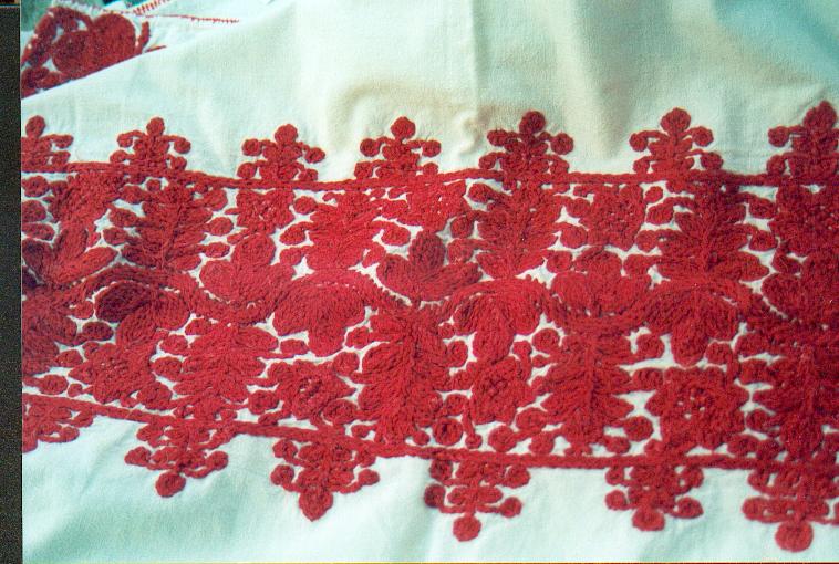 Előfordul a szövésnél, hogy arasznyi óriási tűvel beleöltötték, belefűzték a mintát az anyagba. Ez is előmozdította a hímzés gyors terjedését