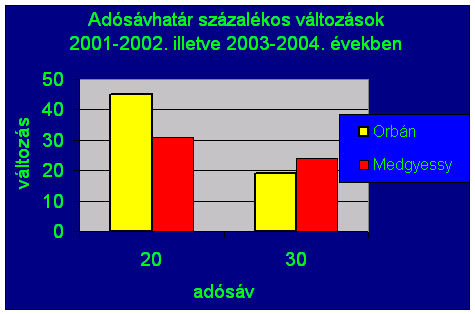 Nézzük a tényeket: Az Orbán kormány 2001-ben és 2002-ben az alsó sávhatárt 45 %-kal emelte, a Medgyessy időszak ugyancsak két év alatt ezen az értéken csak 19 %-ot tervez emelni.