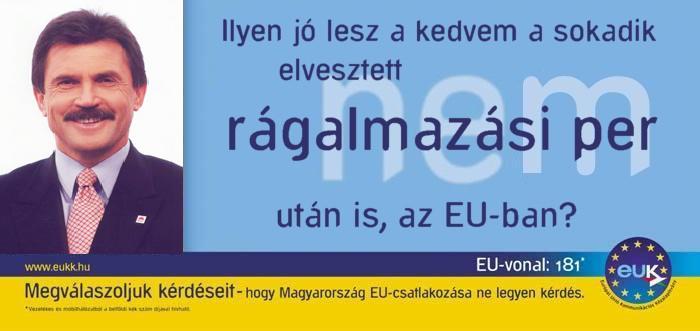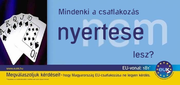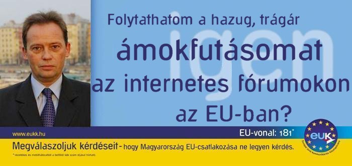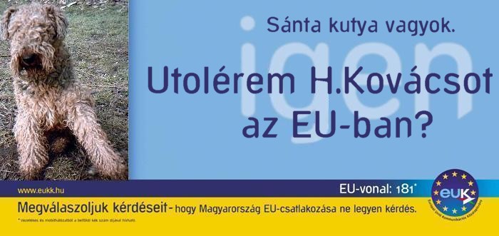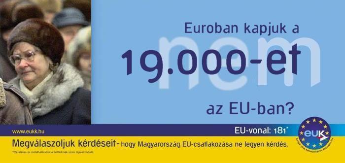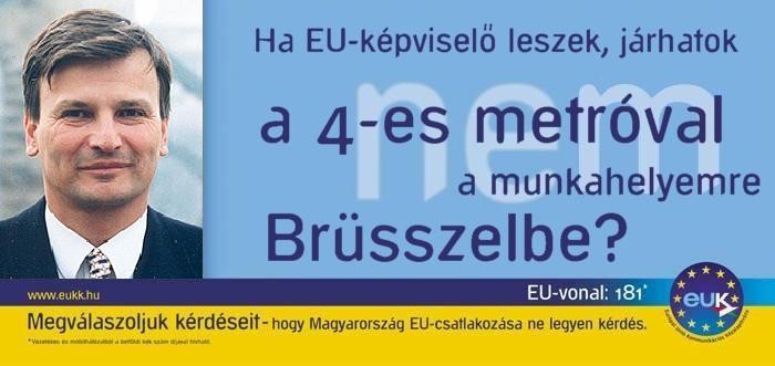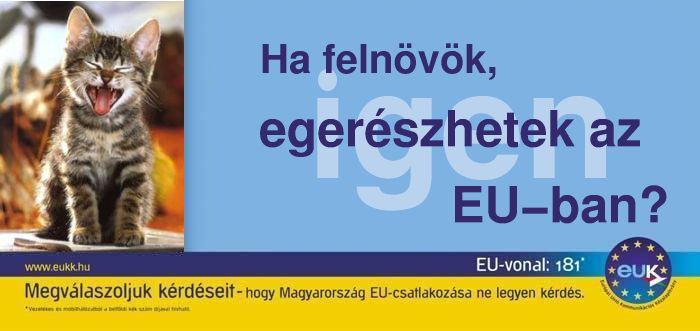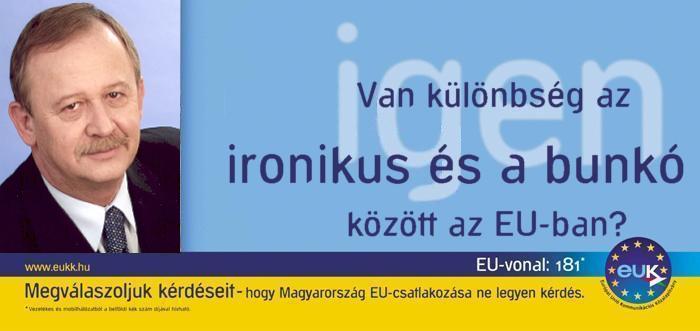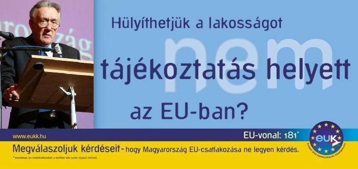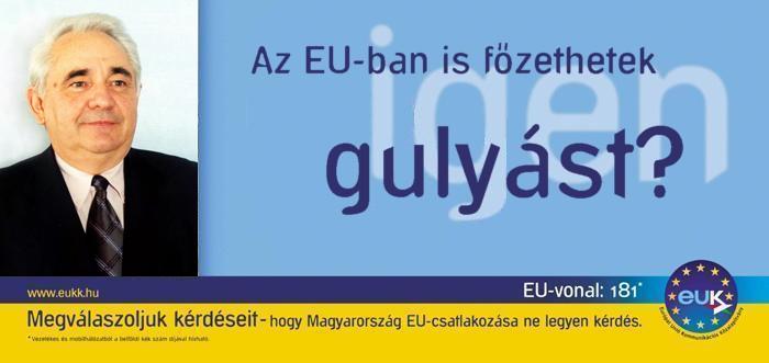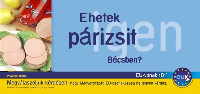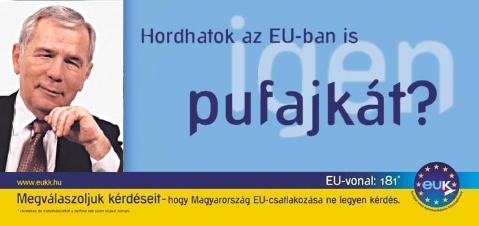 A kormány több milliárdot költ az Európa Unióhoz való csatlakozás kampányára. Általános a panasz, hogy a kampány célt tévesztett és inkább lebeszél, mint rábeszél, legalábbis ezt a reakciót váltja ki az őszintén érdeklődő és kérdéseire választ kereső gondolkodó emberből. Az általunk már korábban is ajánlott www.tubi.hu honlapon számos kép jelent meg, ami a témával foglalkozik. Az alábbiakban ezeknek csokorba szedésével kínálunk fanyar szórakozást azoknak, akik a humort szeretik.