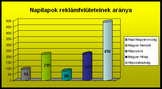 A vizsgálat polgári kormány idején vett egyik szegmenséből – 1999. májustól 2000. augusztusig véletlenszerűen kiválasztott öt hónap alapján – az derül ki, hogy a baloldali napilapok akkor összesen két és félszer több hirdetési felületet adtak el a jobboldalnál. A VálaszOK Media Consulting azt állapította meg, hogy ez a mért adat szoros összefüggésben van a magáncégek hirdetési potenciáljának jelentős fölényével, az állami megrendelésekhez viszonyítva. Azt már korábban jeleztük, hogy a polgári kormány idején az állami megrendelésekből a jobboldal kapott többet, – 1,6-szeres fölény volt akkoriban mérhető a jobboldal javára – a végeredmény mégis ellenkező előjelű. Az állami hirdetések szoros összefüggése a politikával egy bizonyos mértékig érthető, hiszen egy kormányzat mindig nagyobb súllyal jelenik meg a médiában, mint az ellenzék. A paritás a hírműsoroknál nemzetközileg elfogadott elve nem az ötven százalék kormányzat, ugyanannyi ellenzék téves gondolatmenetére épül, hanem egyharmad kormányzat, egyharmad koalíció és egyharmad ellenzék jelenlétét tartja kiegyensúlyozottnak. E párhuzam alapján a másfélszeres kormányzati hirdetési preferencia kiegyensúlyozottnak tekinthető, azon túl viszont már minden jelentősebb eltérés indokolatlan.