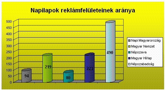 A négy összehasonlított lap közül legkiválóbb reklámvonzónak a 168 óra mutatkozott, ami azért meglepő, mert példányszáma [Pontosan 49.635 példány hetente: MATESZ: 2002. II. negyedév] alapján még ebben a szűk körben sem jeleskedik, ráadásul rendkívül hektikusan ingadozik. A példányszám alsó értékei alapján mondhatjuk, hogy ezt a lapot esetenként igen komoly piacon kívüli erőfeszítés mentette meg a csődtől, függetlenül az olvasók értékítéletétől. A radikális baloldal szócsövének tartott 168 óra hirdetésszerző képessége egészen kivételes, a vizsgált időszakban 215,5 oldal reklámfelületet adott el döntően hirdetés, esetenként PR cikk formájában.