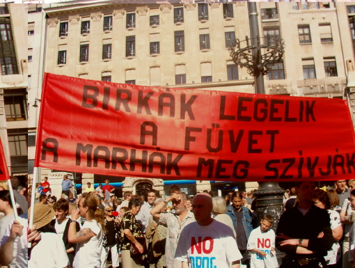 A társadalmi légkör nem kedvez a nyugodt párbeszédnek, lásd az alábbi, Vörösmarty téren készült felvételt, viszont alkalmas arra, hogy az SZDSZ tisztára mossa magát a kábítószer ügyben ellene felhozott vádak alól.