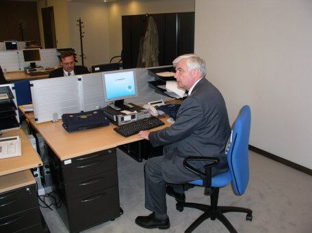 A megfigyelés első napja: mindenki mosolyog és éljenez, amúgy lassan megy a "bevonulás" Fénykép, belépő, kulcsok, iroda, kódok, egymásnak ellentmondó holtbiztzos információk. De a végén kitisztul a kép, a számítógép magyarul is tud, még a helyesírás ellenőrző is működik.