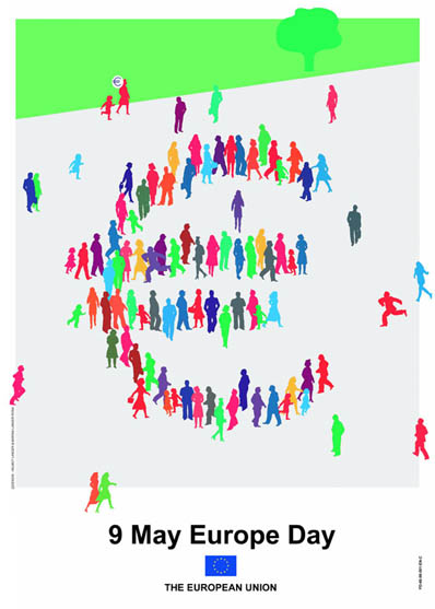 Az Európa Nap egyik plakátja, az Eurót formáló sokféle emberrel