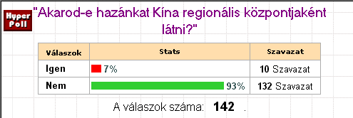 Háttéranyag: Magyarország regionális központ lehet Kína számára Korábbi közvéleménykutatásaink Vissza a kezdőlapra