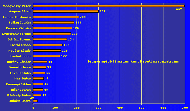 A Népszava feltehetően nem ellenzéki olvasói most Medgyessy Pétert látják a kormány leggyengébb tagjának. Gyurcsány, bár csak nemrég nevezték ki, ugyancsak sok elutasítást kapott: majd kilencszer annyit, mint Juhász Endre.