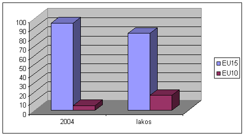 A 2004. évi költségvetésben azonban nem ezt az arányt mutatja. Szerencsére, vélhetné valaki, mert az új tagállamok sokkal szegényebbek, s az Európai Unió egyik értéke a szolidaritás.