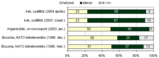Az 1996-os vagy 2003 eleji katonai vonatkozású részvételeket, akciókat a közvélemény többsége támogatta. A háborúk utáni rendezésben való katonai részvételt illetően tehát most először, a szállító alakulat Irakba küldésével kapcsolatban tapasztalhattuk, hogy az ellenzők vannak meghatározó többségben.