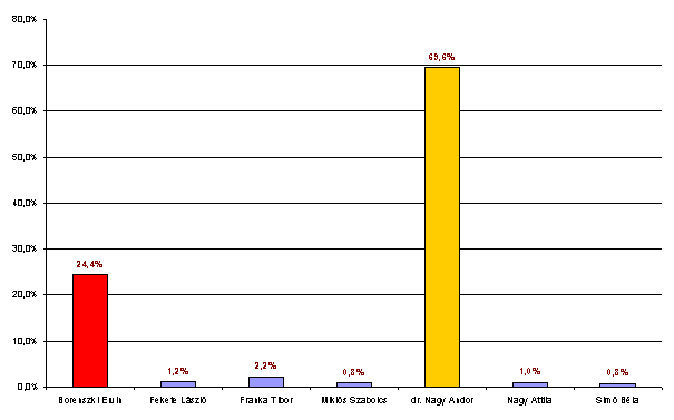 Ezt a számot érdemes megjegyezni. 45,2 százalék. Ennyit vert rá a Fidesz-KDNP jelöltje Szécsényben az MSZP-SZDSZ által ajánlott szocialistára. 5254 fő az eltérés. Tekintélyes szám. Ha a 2002. évi választások első fordulójában a pártra szavazókat tekintjük egy adott körzetben a párt törzsszavazóinak, akkor Nagy Andor, a Szövetség jelölje most 72 százalékát tudta megmozgatni a törzsszavazóknak, míg Borenszki Ervin a saját csapatából csak 28 százalékot mozgósított (az SZDSZ-t, mint a térségben jelentéktelen erőt, most nem számítjuk).