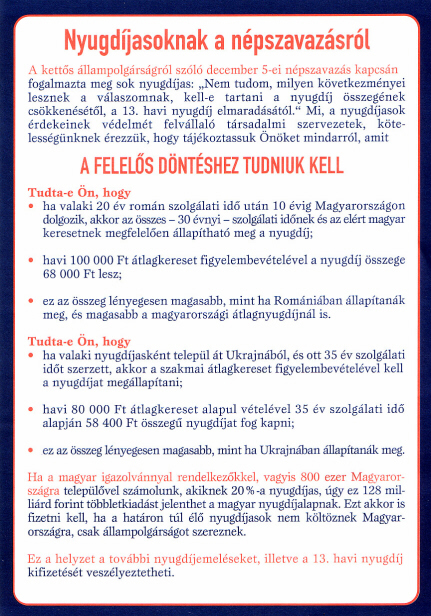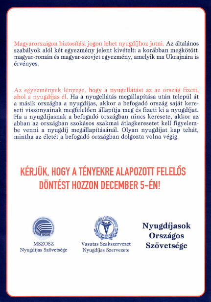 Az itt megfogalmazottak viszont szemenszedett hazugságok, s a szórólap hátoldalán szereplő saját szövegükkel is ellentétben van, hiszen leírják, hogy a nyugellátást az az ország fizeti, ahol a nyugdíjas él.