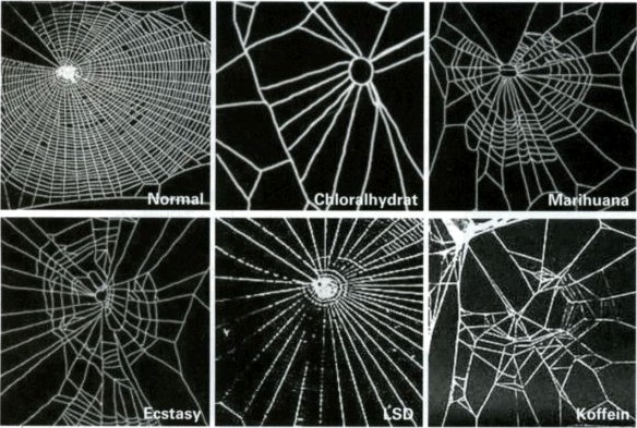 Már korábban kimutatták, hogy ez nemcsak az emberekre hanem a pókokra is érvényes. Pókokat különböző drogokkal kezelték, majd megnézték, milyen hálót szőnek ezután. Változatos kreációk születtek, amiknek nem sok közük volt az eredeti légyfogó berendezéshez.