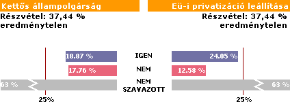 A résztvevők száma nem érte el a 3 milliót, azaz több mint 5 millióan otthonmaradtak. Igennel a határon túliak kérdésére 1,5 millió ember szavazott. Egy részük nem hitte el a hamis propagandát, hogy neki személyesen ártani fog, ha állampolgárok lesznek a határon túl élő nemzettársaink, más részük viszont nem törődött anyagi előnyökkel és hátrányokkal. Kérték, adott.