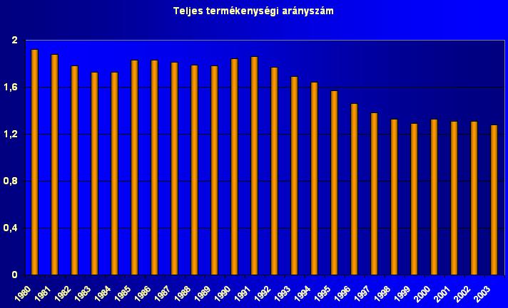 Az ezer megfelelő korú nőre jutó élveszületések száma és a teljes termelékenységi arányszám 1980–2003