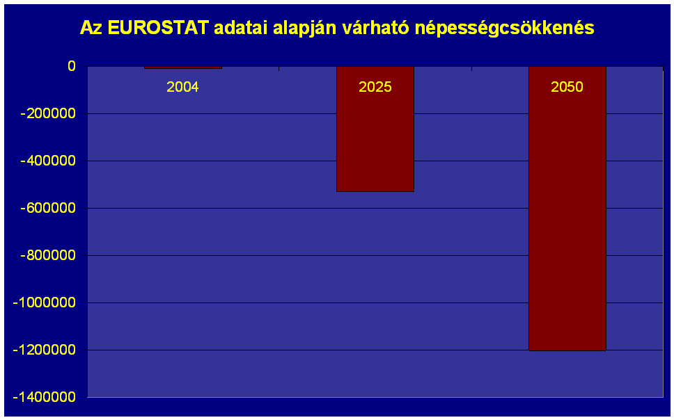 Hét országban - a visegrádi négyekben (köztük Magyarországon) és a balti államokban - már most is csökken a lakosság. 2025-re csökkenőre fordul Olaszországban, Németországban, Portugáliában, Görögországban, Spanyolországban és Szlovéniában is. 2050-ben már csak Svédország, Írország, Ciprus, Málta és Luxemburg lakossága mutat majd növekvő tendenciát. Uniós átlagban a halálozások száma már 2010-re meghaladja a születésekét, de a természetes fogyást tizenöt éven át még kompenzálja a bevándorlás a luxembourgi hivatal várakozásai szerint.