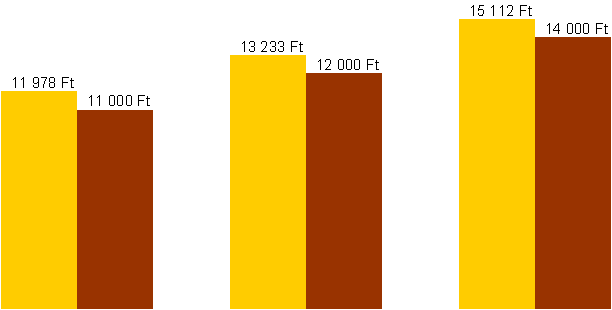 (A világos oszlop a jelenlegi támogatási formát mutatja, míg a sötét oszlop az új rendszer szerinti támogatást)
