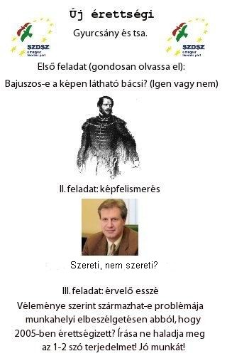 Szerkesztőségünk postaládájába dobva találtuk az alábbi anyagot, amelyről egy magát megnevezni nem akaró minisztériumi tisztviselő elismerte, hogy maga a pótérettségire kidolgozott tételsor. Mindazok, akik az ismert tételkiszivárgás ellenére nem tudták megfelelően elkészíteni érettségi dolgozatukat, az alábbi feladatokat kell megoldják, s megfelelő eredmény esetén akár egyetemi felvételt is érő túlérettségi bizonyítványhoz juthatnak.