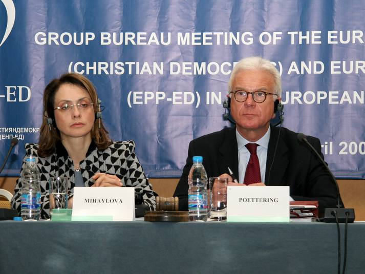 Az általános politikai helyzetről a három EPP tagpárt elnöke beszélt. Elsőként és leghatásosabban a képen látható Nagyezsda Mihajlova asszony, (UDF - a Demokratikus Erők Szövetsége) aki az Unióba való belépéshez fűzte gondolatait. Négy olyan problémát említett meg, amelyek nagymértékben befolyásolhatják, hogyan alakul Bulgária helyzete az Unióban: