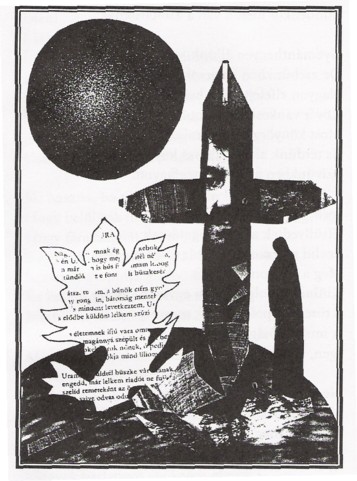 Bár nem tudom: a költő szereti-e Szécsi Magda illusztrációit? Ha rájuk pillant – látja a köztes utak csendjét, az arctalan időket, a jelentéktelen örökkévalóságok szomorúságait; látja a kilátástalanság senkiföldjére szorítottak lágeréletét (mert rettenetes szögesdrótok mögött vegetálni, de még iszonyúbb a legyőzetés előtti üresség reménytelensége); és látja a széthullás részeit, egy kaleidokozmikus kiállítás képeit és képzeteit; látja az Urat. Látja, mert itt és most is megrajzolhatatlan, nincs jelen; csak így, visszatükröződve létezhet...!