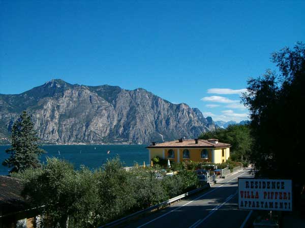szállást. Kisebb nyelvi gondok voltak, mert olaszban majd mindenki németes s én meg angolos vagyok, de azért elboldogultunk, mert ők is tudtak kicsit angolul, én meg kicsit németül... így összejött a dolog. Nagyon szép helyen volt a szállásunk, kb. 50 méterre a tótól s a teraszunkról rá lehetett látni a tóra, s a szemközti hegyekre, így szerettünk is ott kajálni meg ücsörögni.