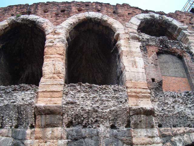 Visszatérve Veronára, bementünk a Bazilikába, ahol épp mise volt, s a jegyárus srác nem engedett be senkit... Apu persze kérlelte hogy csak 5 percre stb. de nem nem. Végül kisütötte az amúgy helyes srác (szintén tudott angolul), hogy ha 1 óra múlva visszajövünk, akkor vége a misének s ő beenged minket ingyen (pedig euróba kerülne):-)))) Úgyhogy elpályáztunk.. volt mit nézni, ezen nem volt gond. Verona városa egyébként a világörökség része, sok régi épület van, de a legrégebbi az 1. században épült aréna. Természetesen éppen restaurálták (miért is ne máskor?) s csak egy darabját lehetett látni állvány nélkül. Ez némileg rosszul érintett.. A főtéren számos kisebb csap volt, így 10 percenként lelocsoltam magam hogy jobb legyen a hőfokom s rájöttem hogy így egészen túl tudom élni a 35 fokot...