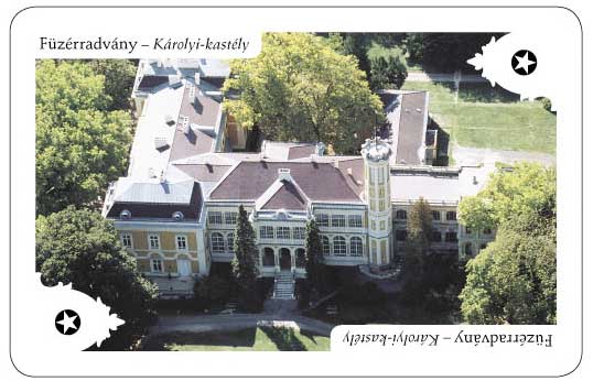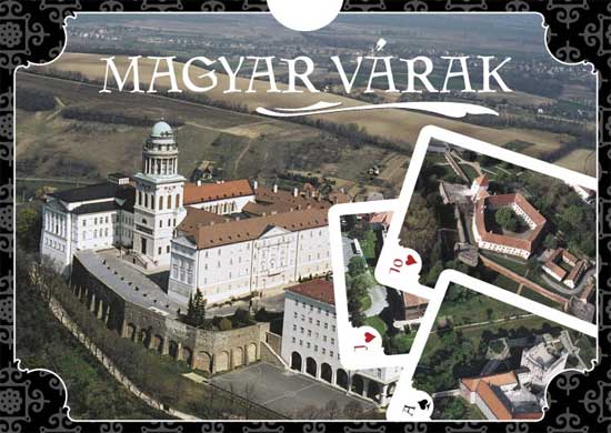 A kiadó, gondolva a könnyedebb szórakozásra is, most előrukkolt új illusztrált francia kártya-csomagjával, amelynek lapjain ötvenöt magyar vár, illetve ötvenöt magyar kastély légi fotóját láthatjuk, forgathatjuk. S amíg összejön a römi, azon is eltűnődhetünk: hol nem jártunk még? Vagy, ami a legrosszabb – azért csak megremeg a kezünk, netán kártyavárként omlunk össze, ha úgy hozza a lapjárás, hogy esetleg Pannonhalmát kell eldobnunk…