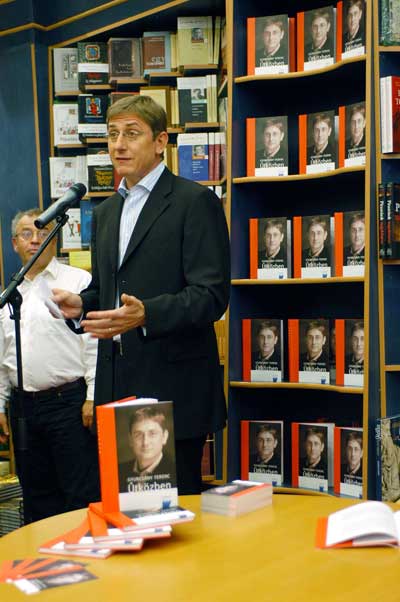 Babits és Gyurcsány… Nem megy. Nem erőltetném én ezt ennyire, no de hát a miniszterelnökünk egy könyvesboltban járt. Nem vásárlóként, hanem íróként. Úgy gondolta: ez a terület is egy kis pezsdítésre szorul. Általa… Írt hát egy könyvet, amely ugyan nem hátfájása pillanatairól szól, de azt már tudjuk, hogy hátfájdalmai közepette írta annak fejezeteit. Értelmezhetjük ezt úgy is, hogy azokat a pillanatokat is kihasználta, amelyekben nem szorgoskodhatott dolgos vezetőként serény csapata élén, mert ágyba, párnák közé szorította a kór. De ő ezt is kihasználta: könyvén dolgozva. És elkészült a mű, be is mutatta, szerény, egyszerű keretek között. Az installációból csupán a vörös drapériát hiányolhatjuk…