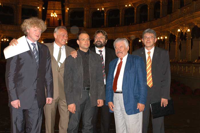 Képünkön, balról jobbra: Müller Péter Sziámi, Hegyi Árpád Jutocsa, Kesselyák Gergely, Bozóki András, Petrovics Emil és Dr. Kunos József gazdasági tanácsadó