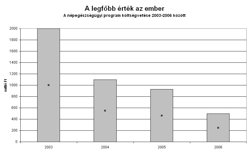 A 2002-ben megalakult kormány egyik fontosnak látszó intézkedése volt, hogy felújította a népegészségügyi programot és pénzt is rendelt mellé. A szép reményeket azonban eloszlatják a tények: a programra fordítható összeg évről évre fokozatosan csökken.