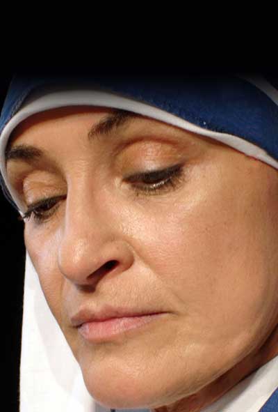 Ez egy tündérmese, gondoltam magamban az első felvonás végéig, minden drámai felütés ellenére. Teréz nővér küzdelme azért a látottaknál sokkal nehezebb volt, amíg Teréz anyává válhatott. Mert az ember eredendően arra van szocializálódva, hogy úgy gondolkodjon: a szeretet útja sokkal rögösebb egy tündérmesénél. Amelyben valahogy minden túl egyszerűen alakul. Egy haldokló hever az út szélén, s Teréz nővér kérésére az addig közömbösen továbblépő emberek közül az első megszólított hajlandó kordéjára tenni a beteget, és a kórházba vinni. A nővér, bár először azt mondja, nincs hely, de később megadja magát a szelíd várakozásnak; orvost és ágyat kerít. Az egyházi elöljáróság engedélyei halogatásával is segíti Teréz nővért, hiszen csak erősítik benne a kitartást; majd, hogy tanítványait megtartsák az egyháznak, inkább engedélyezik egy új rend alapítását számára. Mondom: valahogy olyan meseszép egyszerűséggel történik minden; látjuk a drámát, de ott van egy ember, aki szinte mindenkit a szeretet bűvkörébe von. Mert az emberek, végső soron, jók; miért ne segítenének, amikor valaki megmondja nekik: hogyan kell ezt cselekedniük?