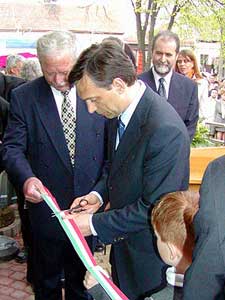 művelődési ház átadásánDebrecen város főterének felújítását, a Kisfogház Emlékhelyet (avatták 2001. nov. 4.). A Sportcsarnokot Tapolcán – avatták 2003. május 31.-én, Orbán Viktor jelenlétében. Magyar tervezők, fővállalkozók és kivitelezők építették (Tapolca a beruházáshoz 2001-ben nyert 720 millió forint állami támogatást, az önkormányzat 30 milliót tett hozzá). A Millenniumi házat Bajóton, ahol a Millenniumi Gyűjteményt őrzik (Orbán Viktor avatta fel 2002-ben). A Művelődési házat Gyálon. A Sárváron épült gyógyfürdőt (megvalósult a Széchenyi-terv segítségével). A Gyógy- és élményfürdőt a Zala megyei Kehidakustyánon, szintén a Széchenyi terv segítségével – Orbán Viktor avatta fel 2003. február 8-án. Az Élményfördőt Kecskeméten: 2003. április 30-án avatta fel Orbán Viktor. (230 millió forint támogatást kapott a város a Széchenyi Terv turizmusfejlesztési alapjából. Gyógyszálló építését is tervezik.) Az Élményfürdőt Esztergomban; a Katolikus Közösségi Házat Nagykátán, melyet 2003. április 24-én avatott fel Orbán Viktor. (Az intézmény felépítéséhez a Orbán kormány teremtett forrásokat.). A lebombázott Kórogy-i templom újjáépítését a mai Horvátországban. A Művelődési központot Soltvadkerten (A 8000 lakosú Soltvadkert az Orbán-kormány idején összesen 1 milliárd forint értékű kormányzati támogatást kapott, amelynek jelentős része a Széchenyi Terv keretében érkezett a városba. Orbán Viktor soltvadkerti látogatása során három, a Széchenyi Terv pályázatain nyertes vállalkozást látogatott meg 2003. április 25-én és ugyanaznap avatta fel a művelődési házat.)
